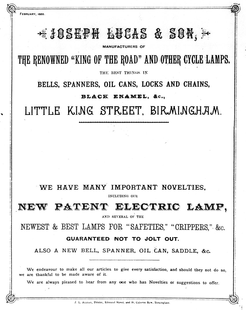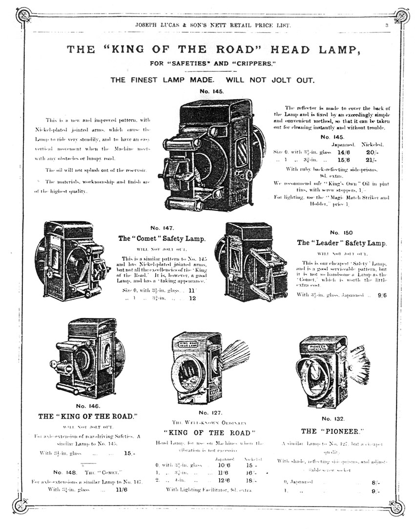 LOT 06 1890s JOSEPH LUCAS & SON ‘PIONEER’ SAFETY BICYCLE LAMP