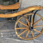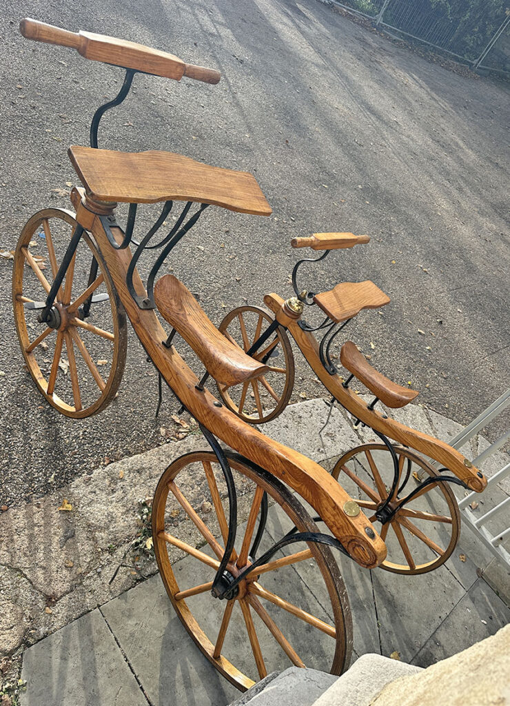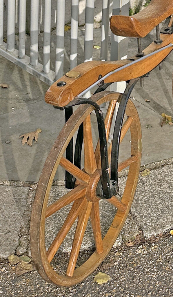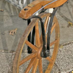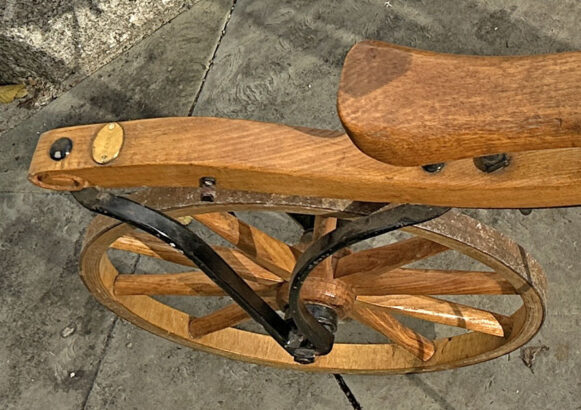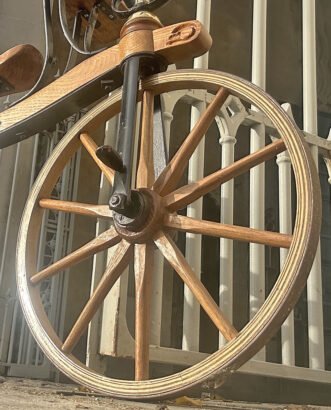 18″ wooden wheel rims, spokes and hubs & metal band tyres